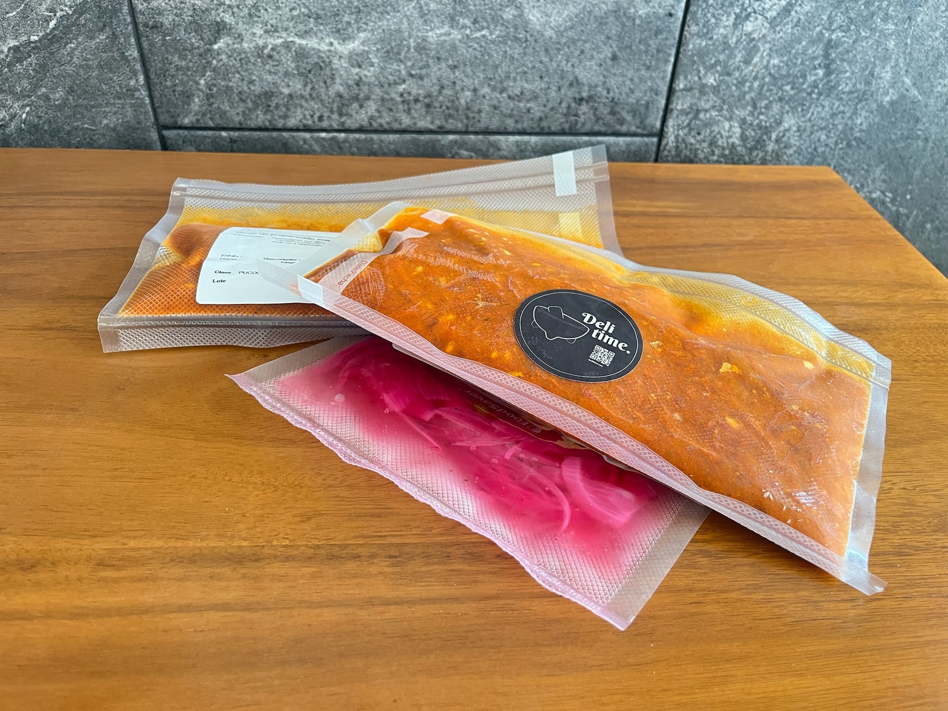 Lomo de cerdo marinado y cocido en axiotes con cebollita morada y chile habanero (viene por separado)